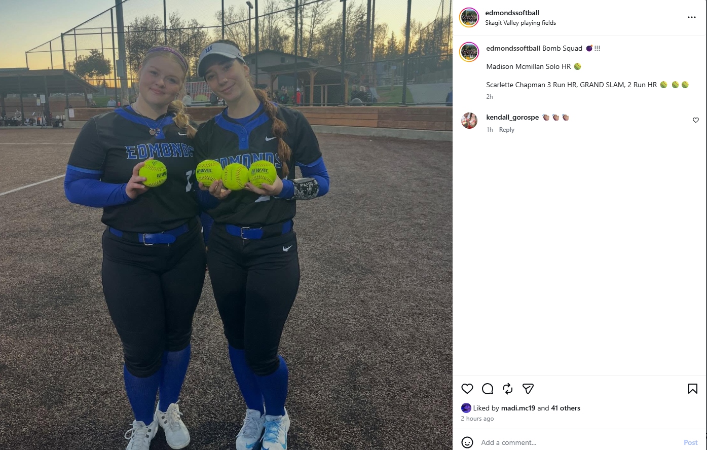The sweep pushes Edmonds winning streak to 20 games, with the squad sitting at 20-1.