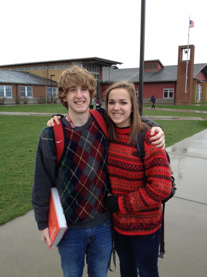 Josh Wilsey and Bessie Walstad model sweet sweaters at school. Later, Wilsey would get up to much soccer-related shenanigans.