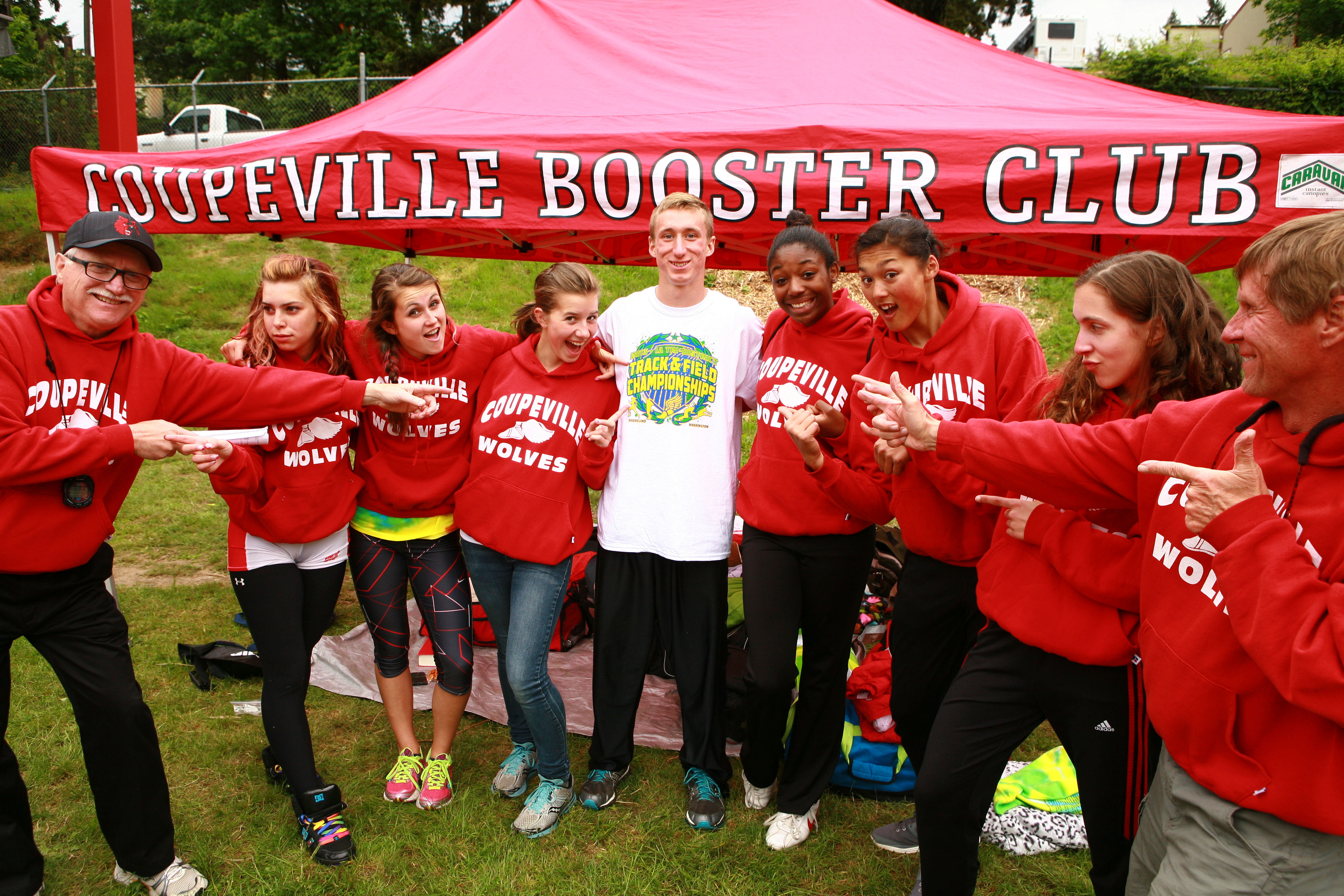 Rain threatened, but never really made an appearance. Present and accounted for was a good part of the Central Whidbey Giants, one of the boys baseball majors teams, there to cheer on their softball counterparts.