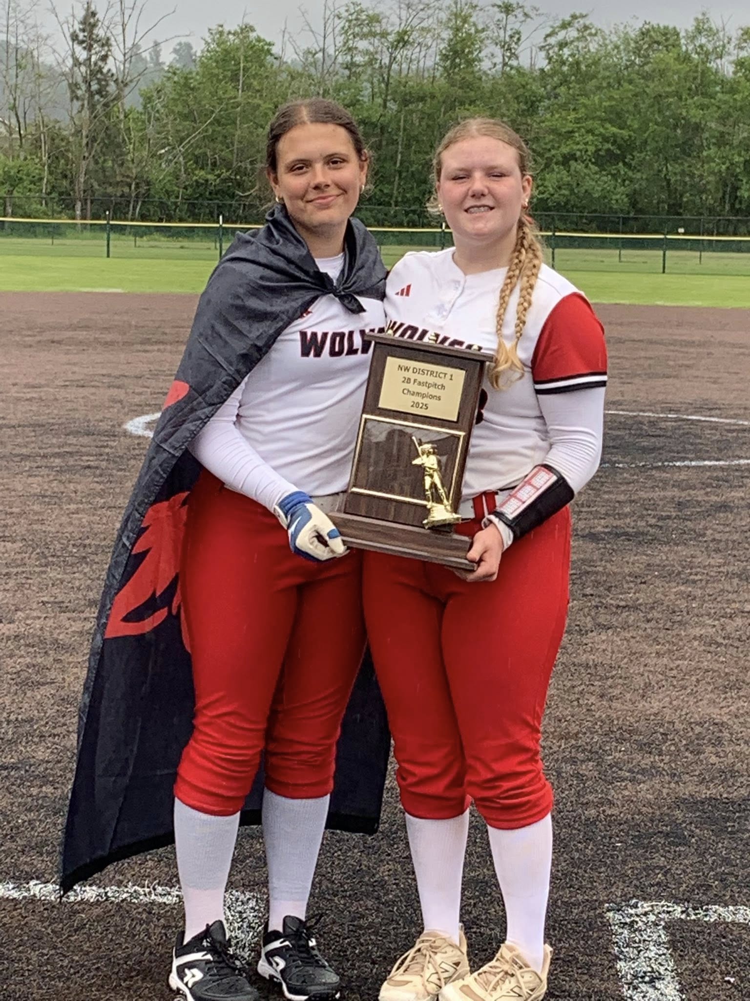 Dodging raindrops Thursday at the Skagit Playfields in Mount Vernon, the Coupeville High School softball squad decisively claimed the District 1 title, while punching its ticket to the 2B state tourney.