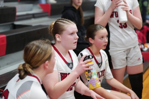 Haylee Armstrong and Calkins converted breakaway buckets off of steals, while Strong couldn’t miss from behind the arc, and the Wolves strolled into the halftime break up 29-10.