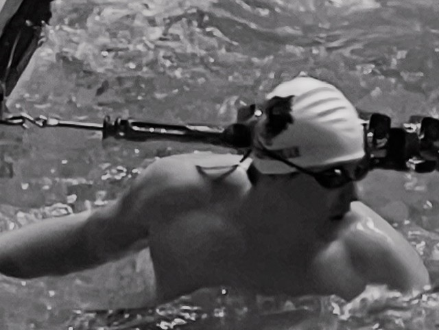 He continues to churn through the water at a rapid pace.