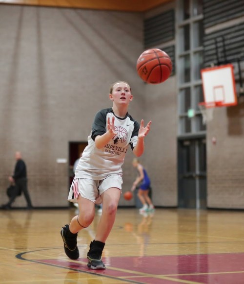 While the Coupeville High School JV girls’ basketball team fell 34-17 at Mount Vernon Christian Tuesday, Wolf coach Alita Blouin came away pleased with the grit and hustle she saw from her players.