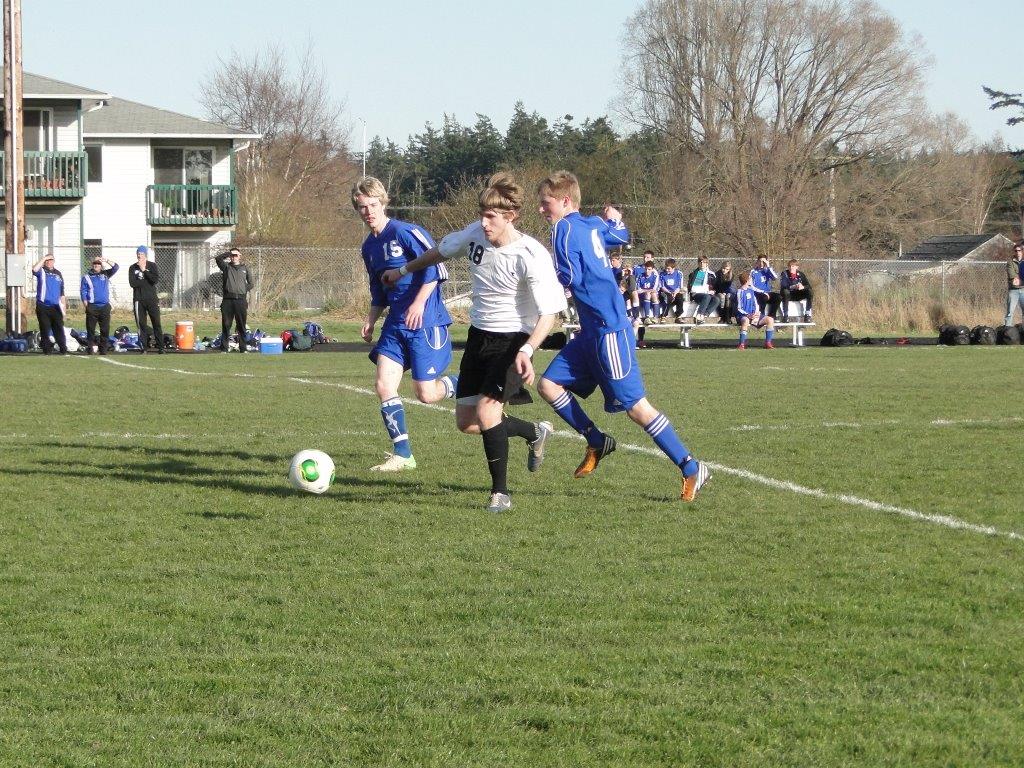 Playing their Island compatriots, the Wolves fell behind early when the Falcons slipped a pass through the Coupeville defense, setting up a one-on-one with the goalie.