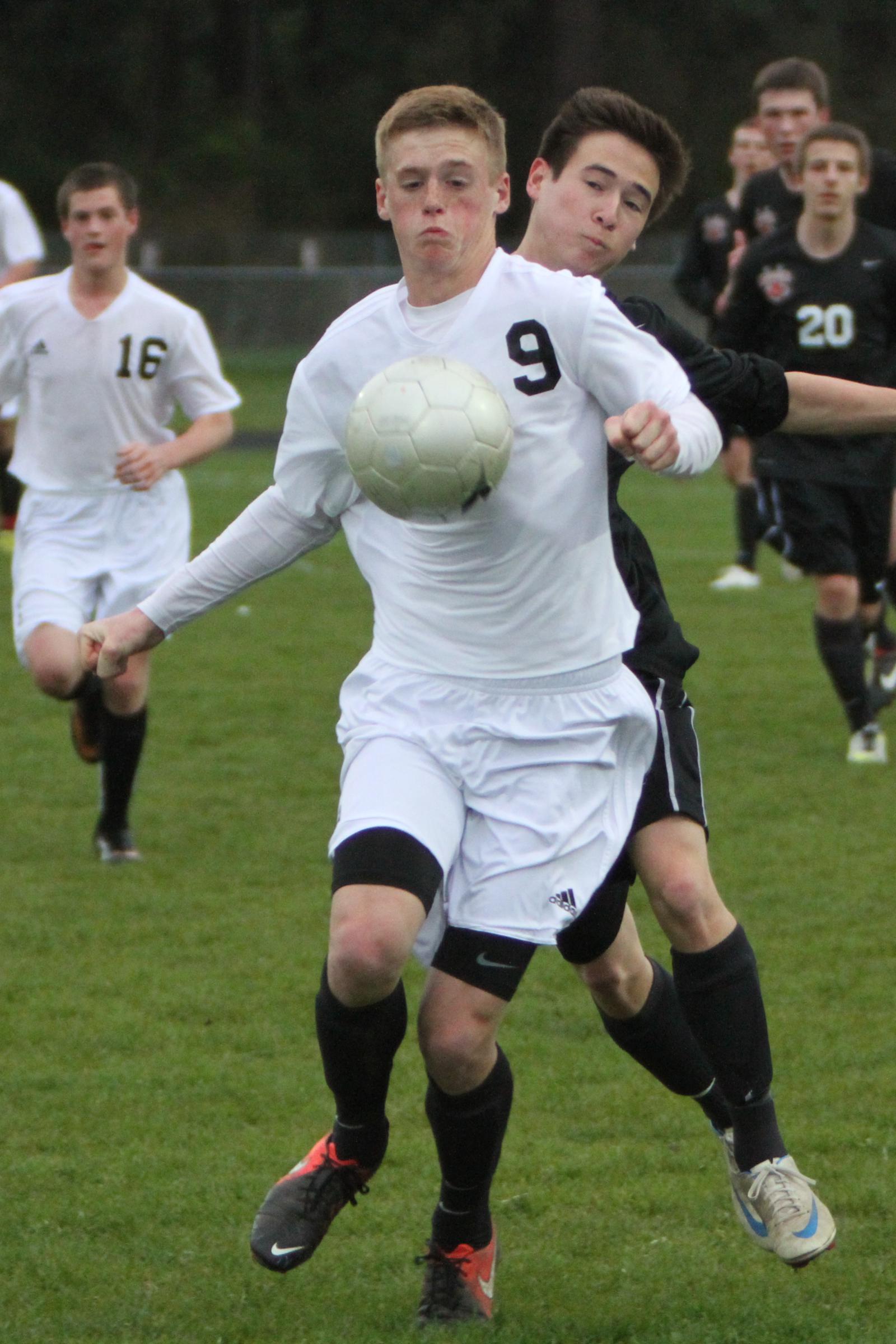 The two teams then battled toe-to-toe for nearly 50 minutes of sparkling defense, before South Whidbey found the eventual winning goal on the foot of Bryce Auburn in the 71st minute. Lyons tacked on a final score four minutes later.