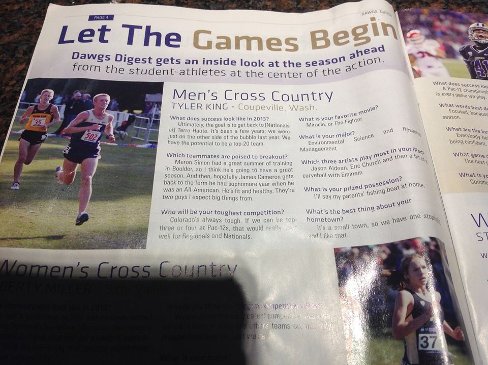 Tomorrow, he and his teammates on the University of Washington mens’ cross country squad prepare to scorch some booty in California at the NCAA West Regionals.