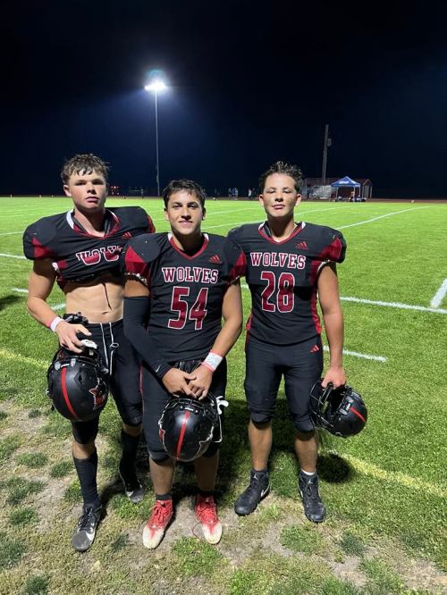 Wolf seniors (l to r) Jack Porter, Marcelo Gebhard, and Johnny Porter bask in the afterglow of an opening night win. (Photo courtesy Jeff Porter)