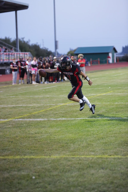 It looked, at least to nearly everyone in the stands, biased or not, that the Wolf signal caller was down on the ground well before the ball popped free and a Friday Harbor defender fell on top of it.