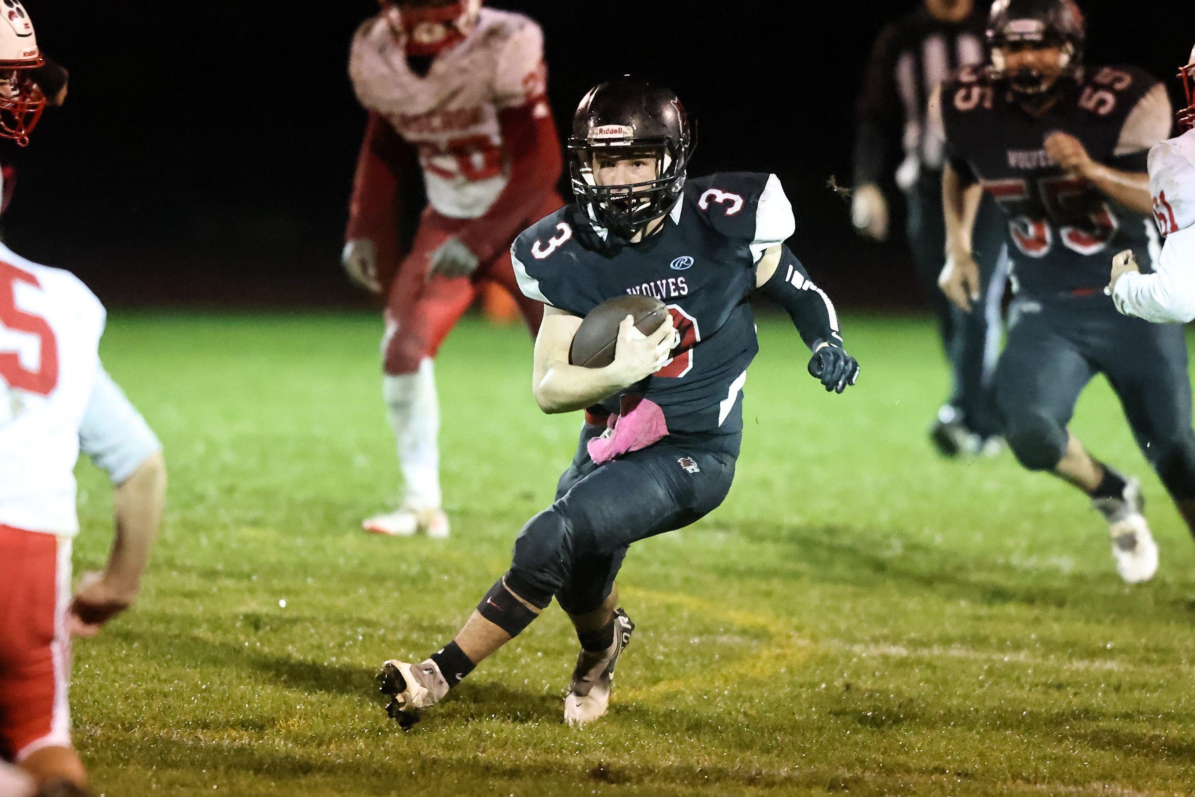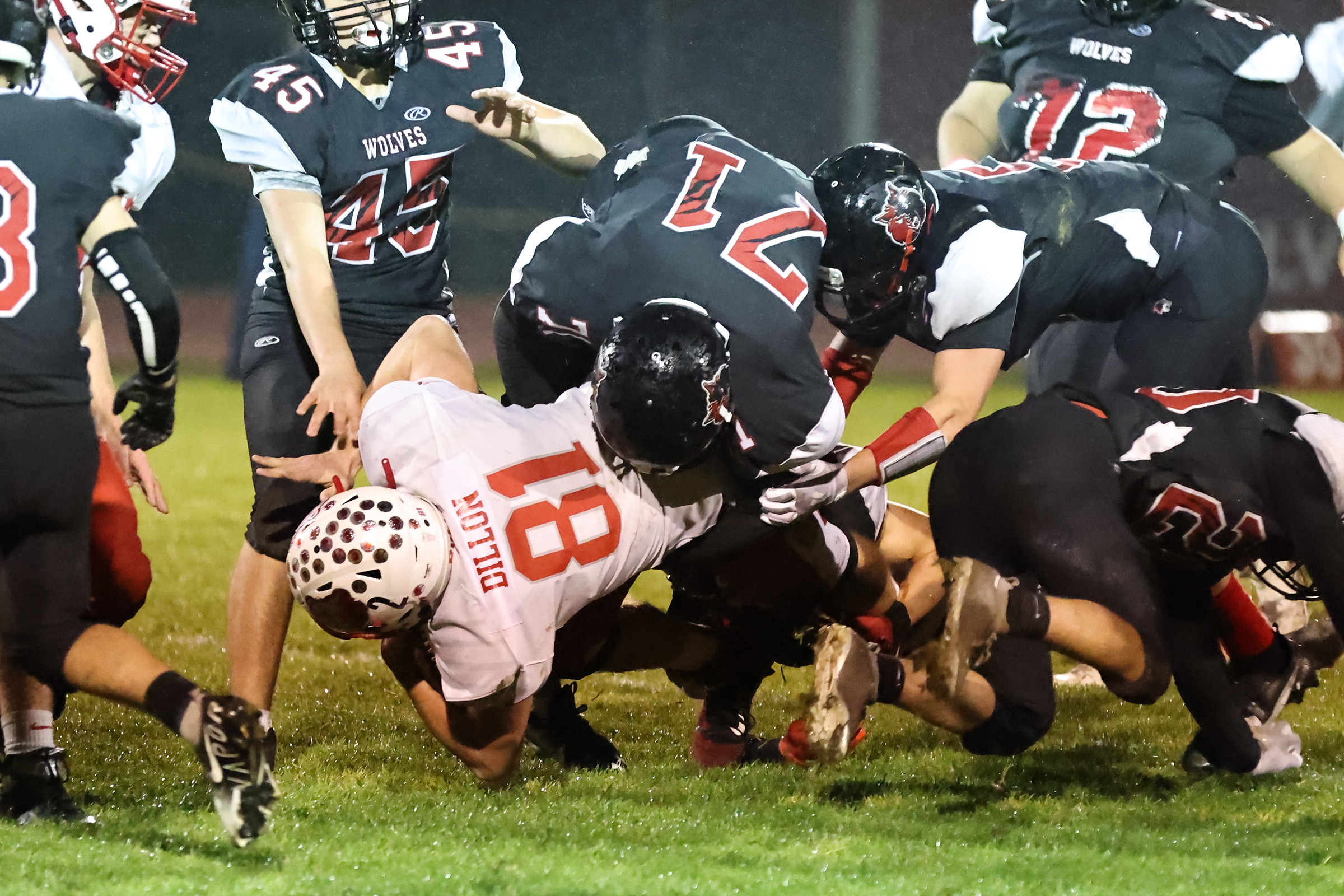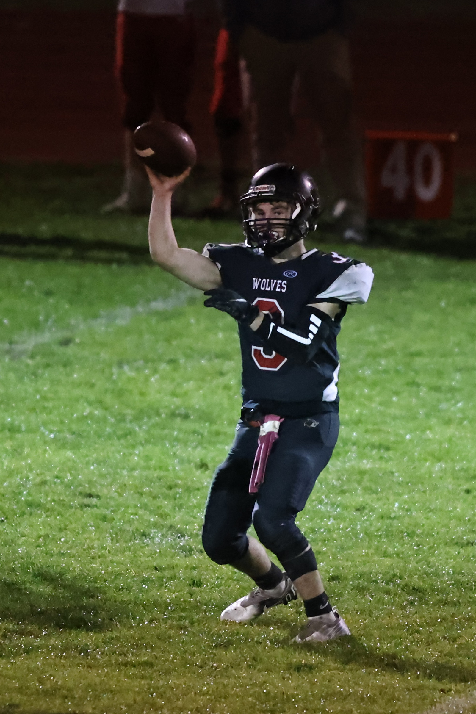 But the slick field, and slicker ball, bothered the Wolves in the early going, as they had trouble holding on to the football.