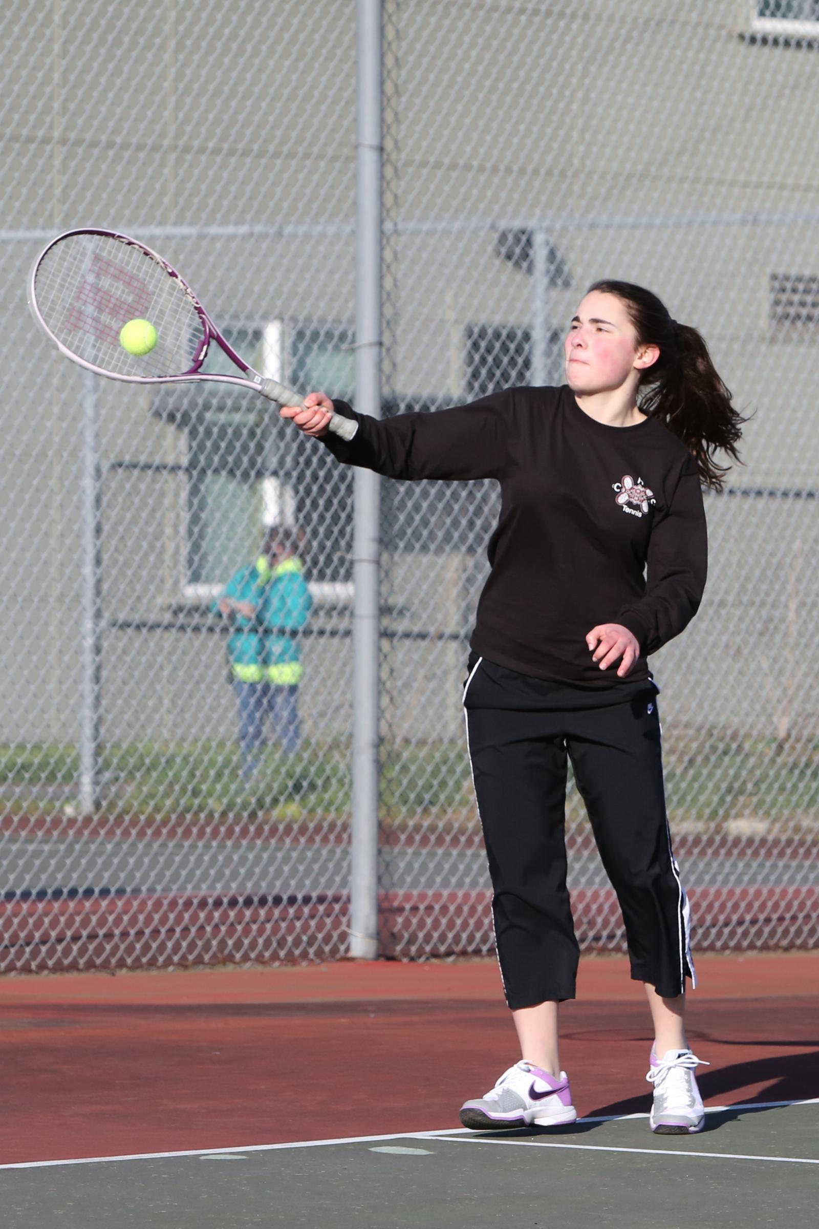 “McKenzie’s got game. She lettered on Friday vs. Friday Harbor. Her volleyball skills help her tennis game substantially.