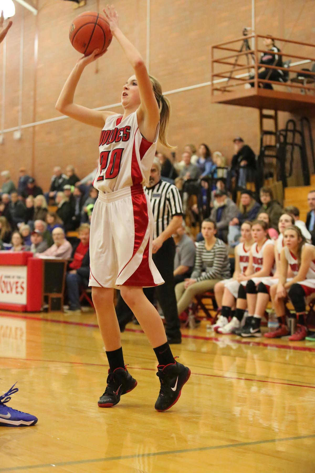 Current CHS freshman Gwen Gustafson leads the cheers back when she was a Wolf Buddy. (Photo by JohnsPhotos.net)