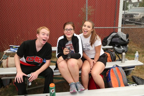 CHS cheerleaders (l to r) Jesse Hester, Claire Mietus and Maggie Crimmins dropped by to root on their classmates.