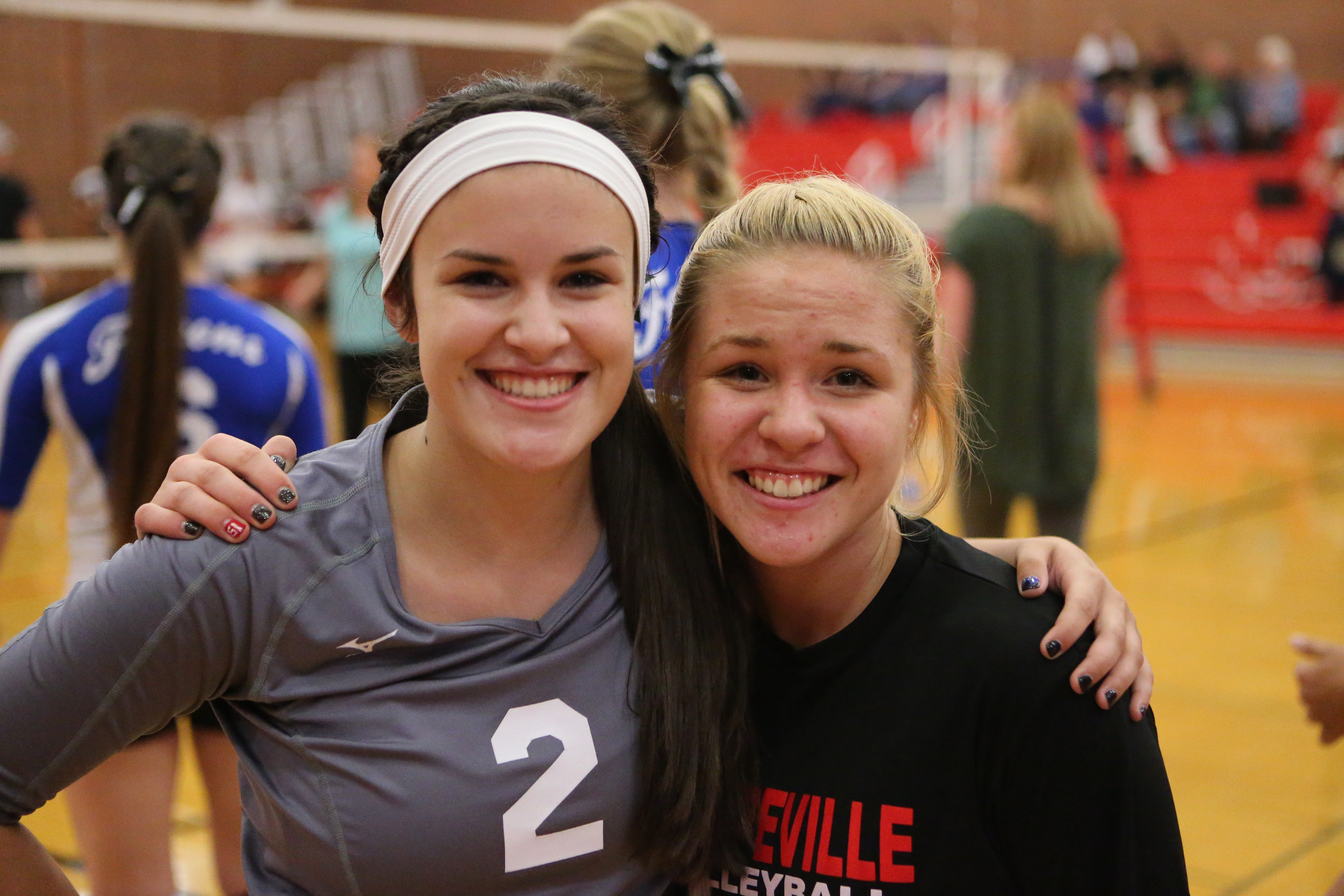 Wolf sophomore Hope Lodell and Falcon senior Sara Bryant faced off across the net, but before and after the match embraced each other, smiling and posing for pics — a reminder that wins and losses matter, but blood matters more.