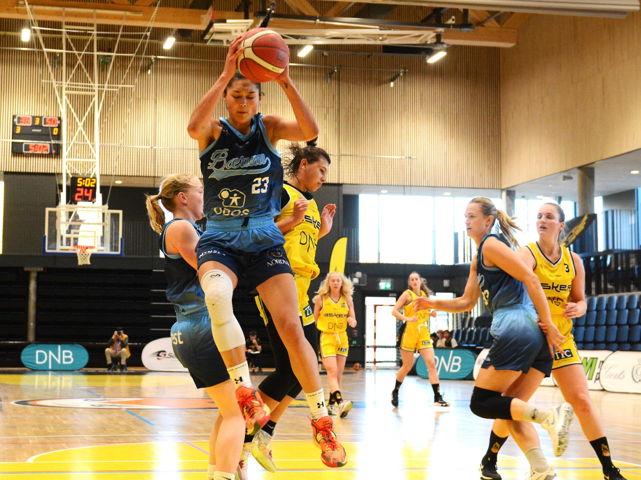 Sunday’s rumble was dominated by Baerum’s American ballers, with Stone recording 19 points, 11 rebounds, three assists, and two blocked shots, while Abbey Hoff had 21 points and eight boards.