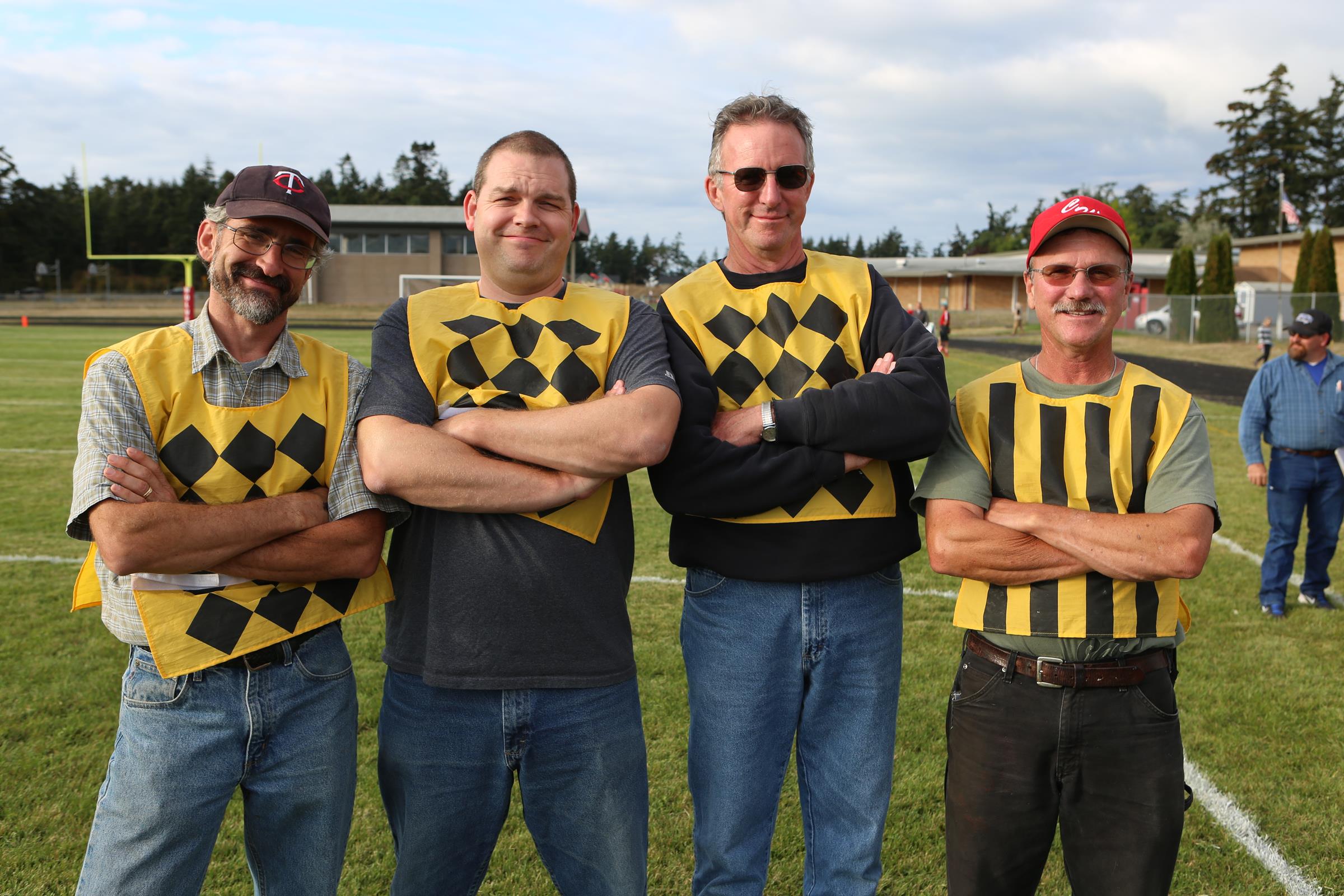 The hardest working chain gang in town are (l to r) Mike Etzell, Lark Gustafson, John Thompson and Randy Payne.