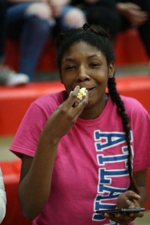 Fast-rising CMS hoops stars Ja’Kenya Hoskins (left) and Izzy Wells visit the gym they will one day rule.