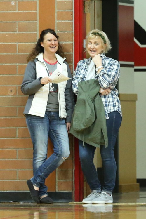 Sherry Roberts (left) and Sylvia Arnold share a chuckle … while discussing their plot to take over the world.