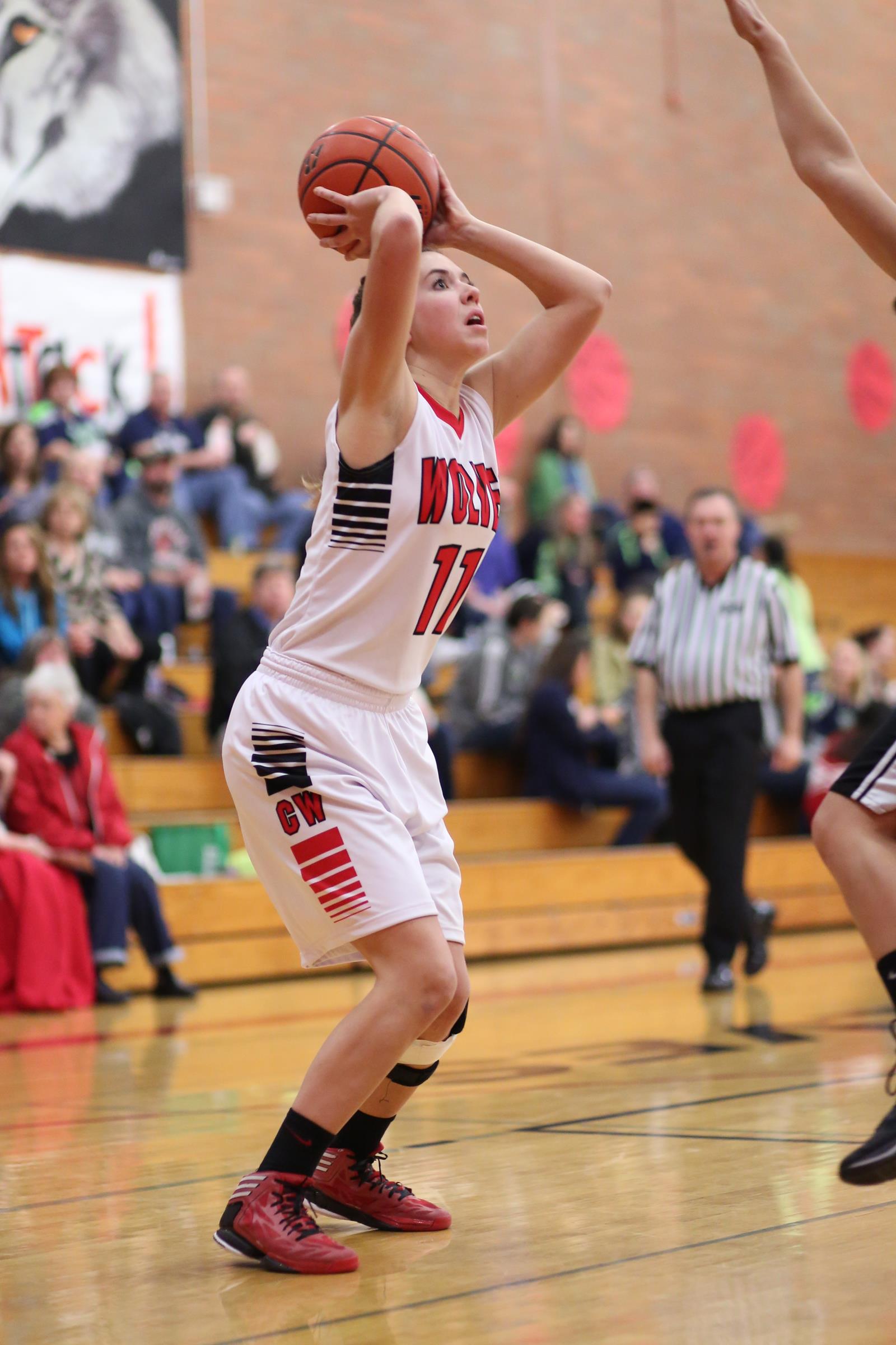 The Wolves opened district play with a bang, as senior Madeline Strasburg — who was injured and missed her team’s 52-51 loss to BC back in early Dec. — knocked down a three-ball to open the scoring.