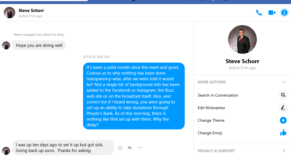 After that, failed promises of transparency, of setting up a way for people not named Mr. Thompson to donate to the cause at People’s Bank, and of a plan to create a print edition of The Buzz.