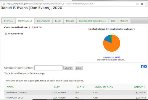 Scott and wife Cynthia Thompson are the top two contributors to Dan Evans.