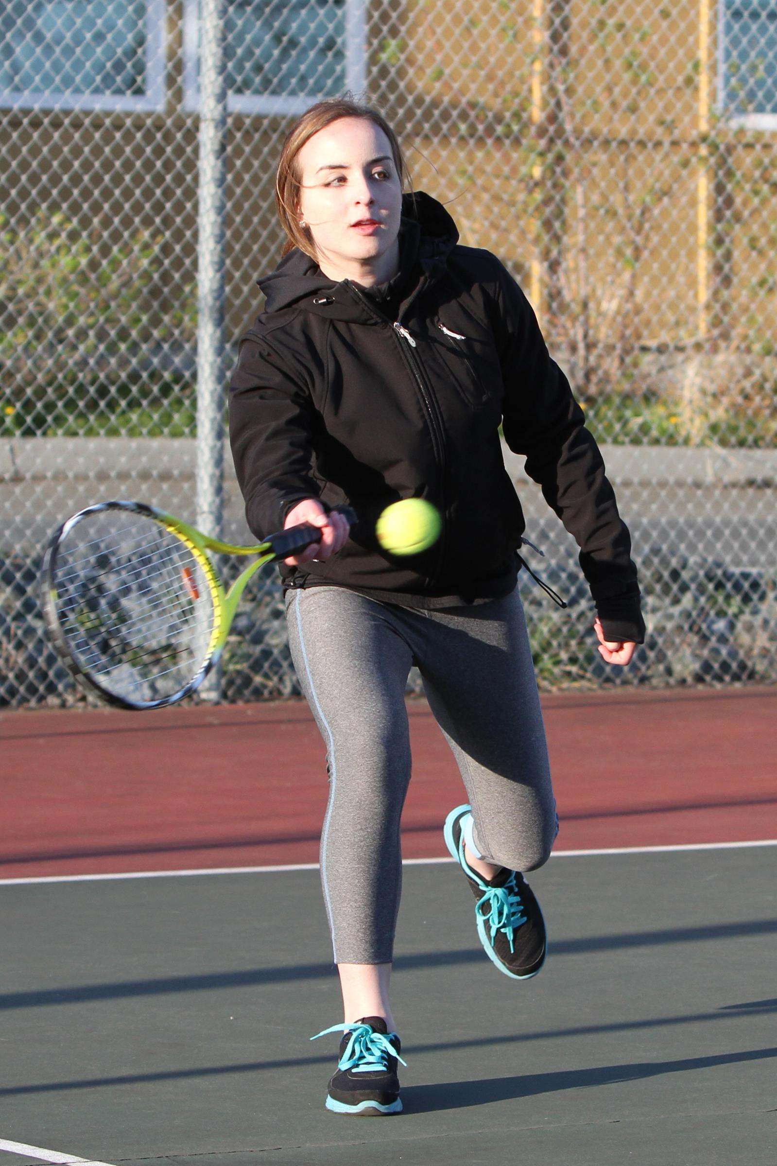 Ivy Luvera teamed with McKenzie Bailey for Coupeville’s lone varsity win Friday. (John Fisken photo)