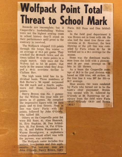 You wouldn’t know it by looking at the gym walls today, but between 1968 and 1970, boys’ basketball became the biggest game in Coupeville.