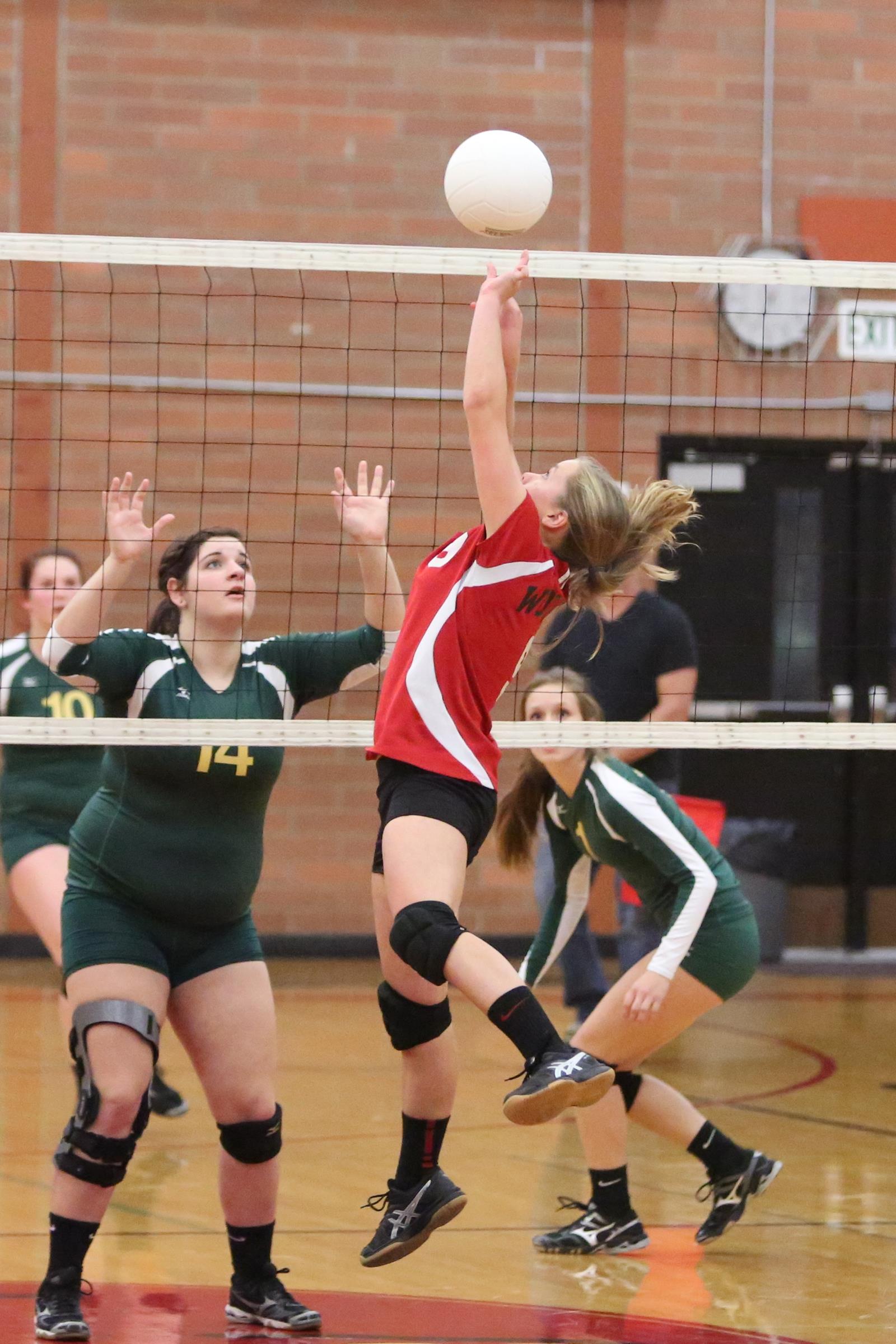 Lauren Rose, seen here in an earlier match, played with the same wild abandon in Thursday’s win over Chimacum. (John Fisken photos)