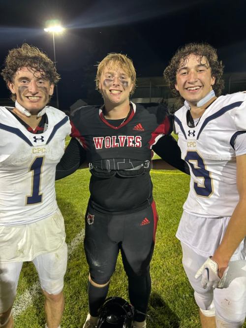 Friday’s Homecoming game brought cousins (left to right) Lyal Viers, Camden Glover, and Andy Penrod back together. (Photo courtesy Tammy Glover)