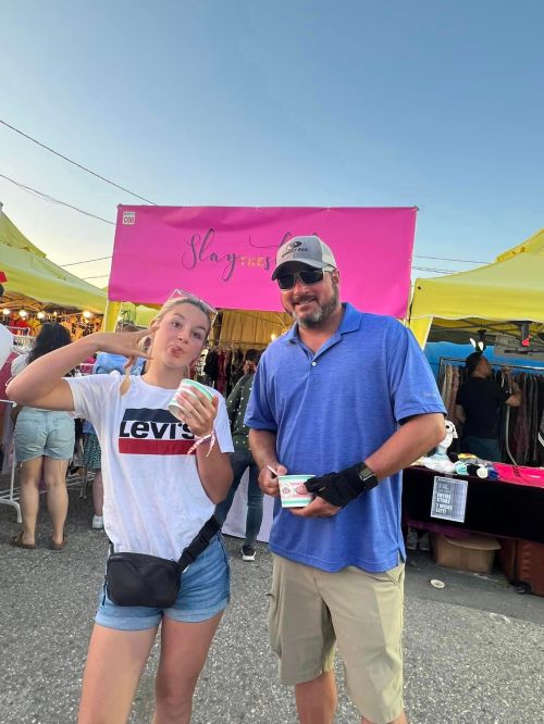 Thunder young gun Haylee Armstrong enjoys the local flavors, while her bodyguard keeps an eye peeled for Britney Spears. (Michelle Armstrong photo)