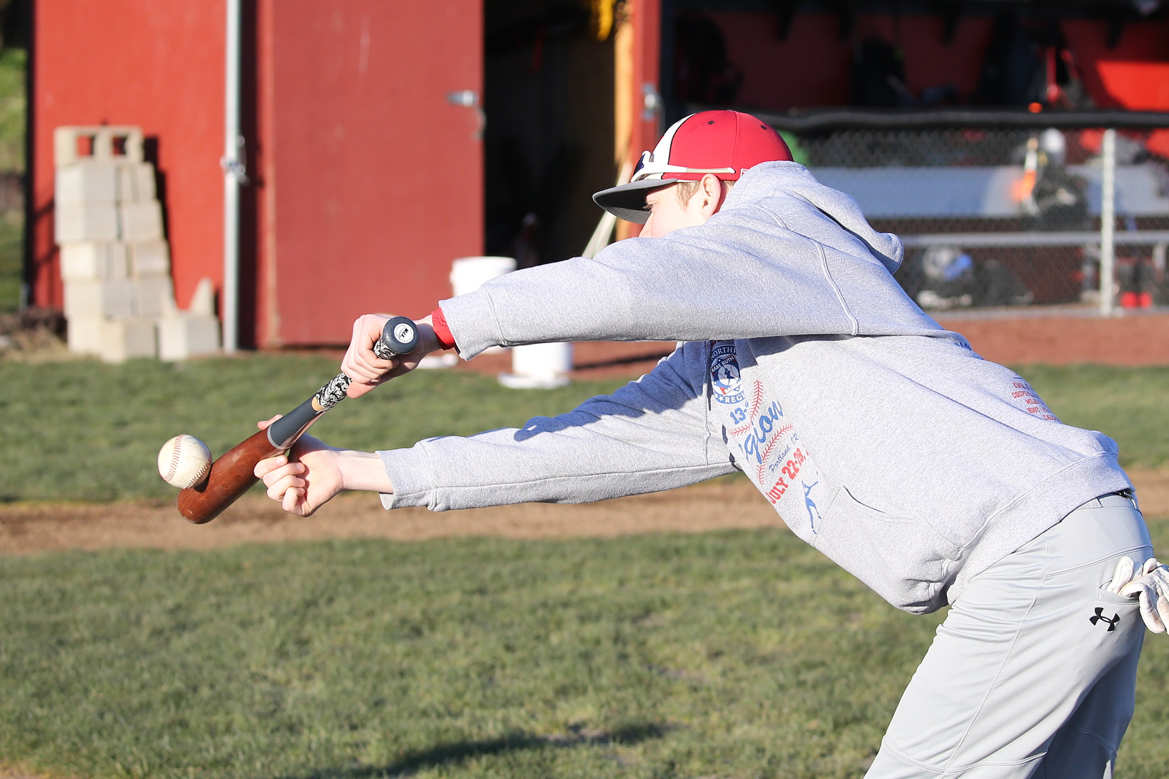 Gavin Knoblich and his bat Shaniqua (yes, that’s really her name) perfect the art of the bunt.