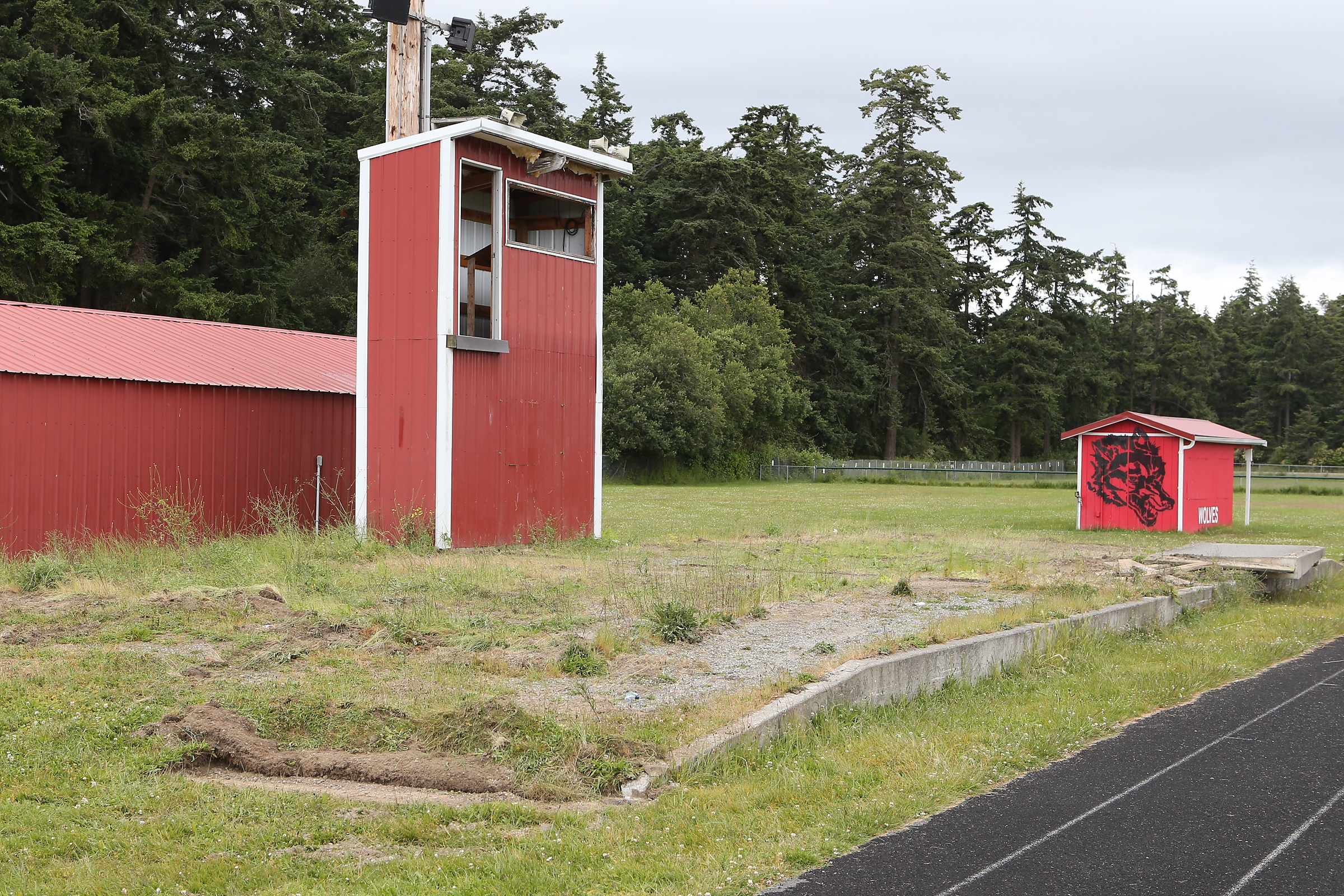 The bleachers are gone, but the dilapidated press box of my misspent youth hangs on … for the moment. (John Fisken photos)