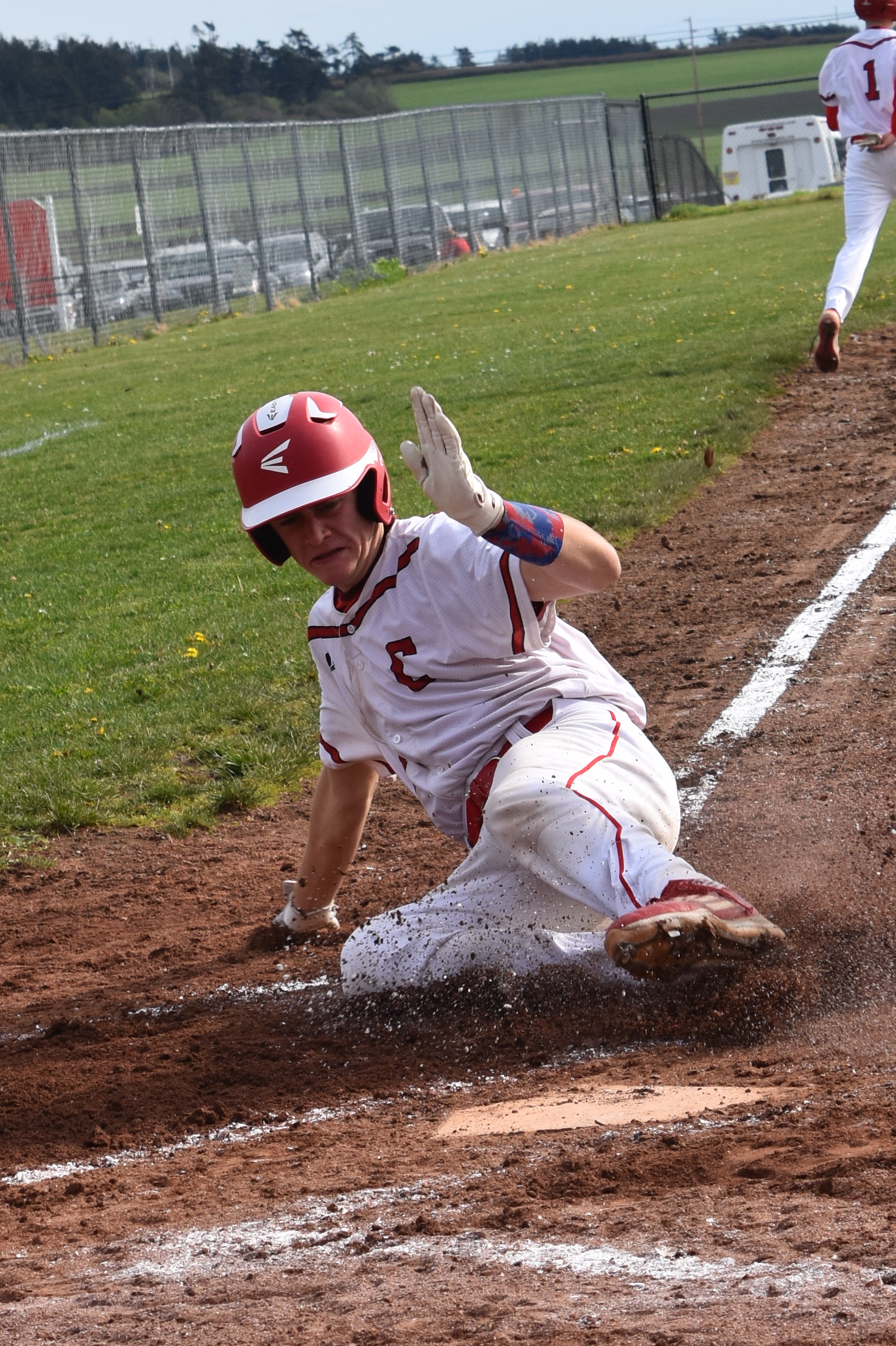 Against all odds, the orb made it down to the ground, evading all three mitts, and Wells, taking long strides, found himself perched on the bag as CHS coach Chris Smith yelled “Yeah, baby!!” from across the diamond.