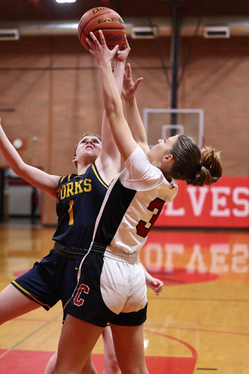Super sophomore Teagan Calkins, who spent the night crashing hard to the hoop, brought an end to Darrington’s brief comeback hopes however, swishing a free throw and kicking off the game’s second 25-0 tear.