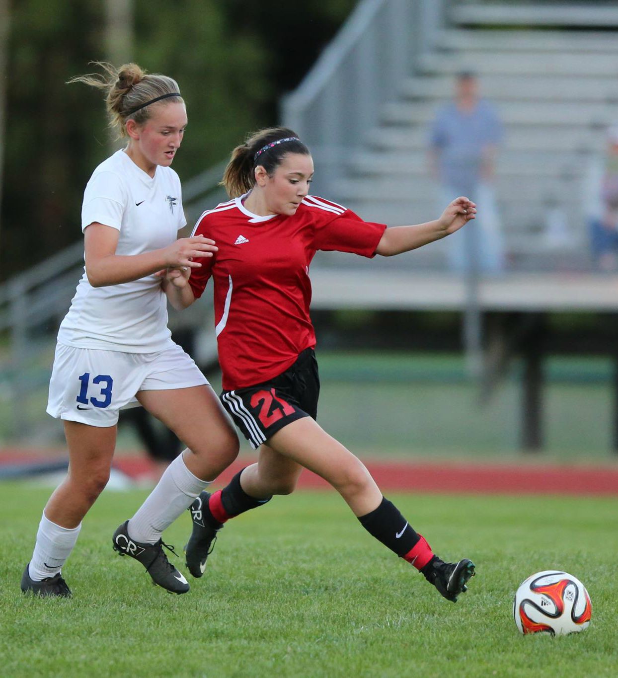 Kalia Littlejohn (right) punched home two more goals Friday, giving her six in six games. (Sylvia Hurlburt photo)