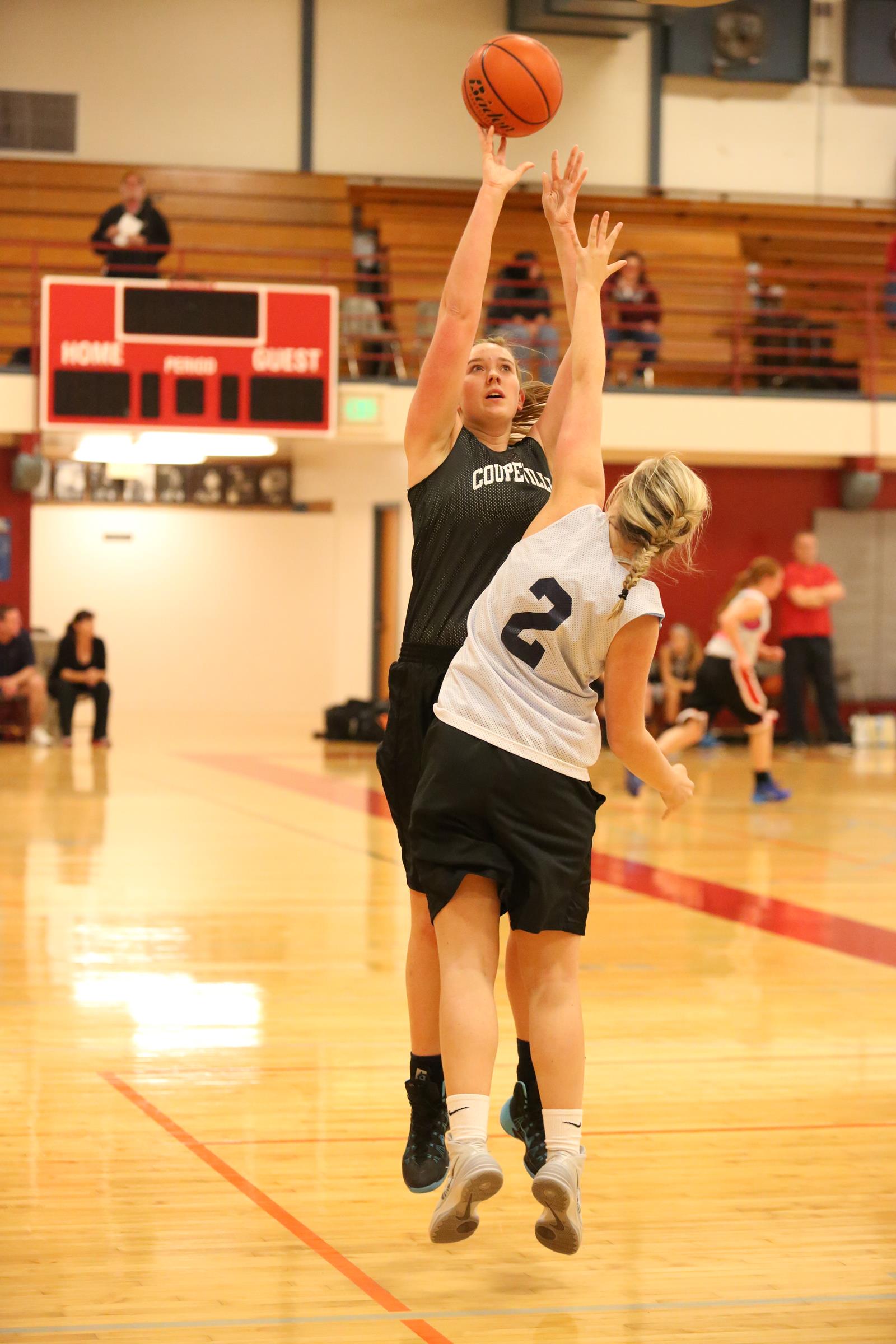 Rachael Arand fires up a shot while playing with Coupeville’s “fall ball” girls’ hoops squad. (John Fisken photo)