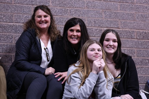 CHS boys’ basketball manager David Somes takes a moment to say, “What’s up?” to mom. (Photos by JohnsPhotos.net)