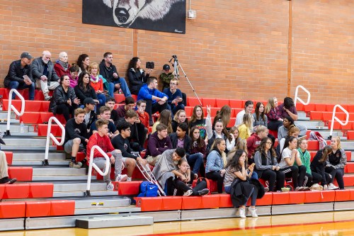Wolf softball sensation Katrina McGranahan swings by the gym to root for her classmates, and, possibly, sign autographs.