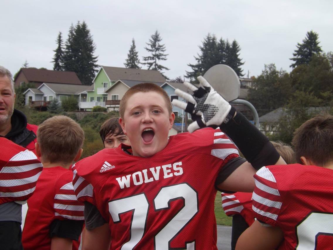 Coupeville Middle School eighth grader Sean Toomey-Stout isn’t the biggest football player on the field, but he never stops attacking.
