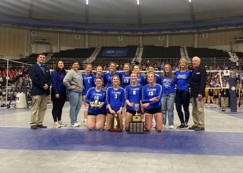 Suzanne Marble (second from right, back row) built La Conner into the premium volleyball program in the region. (Photo property WIAA)