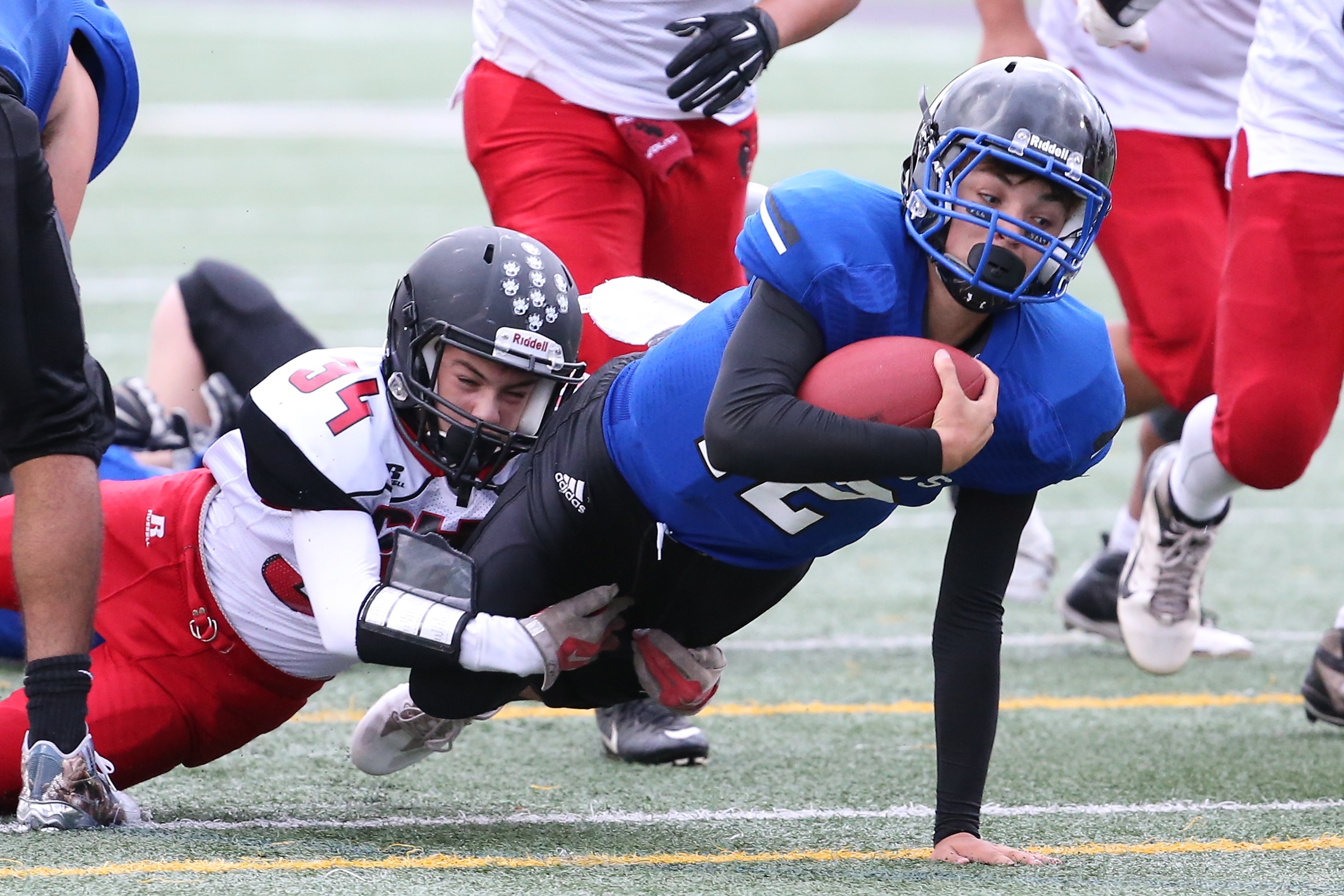 While teammates Hunter Downes and Hunter Smith were tying offensive records Saturday, Axel Partida was going all-out on defense. (John Fisken photo)