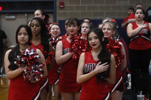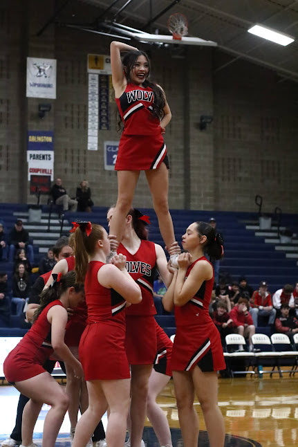 The Coupeville High School cheer squad hit the road Saturday, traveling 60+ miles to Arlington to provide the soundtrack for Wolf fans at the state basketball playoffs.
