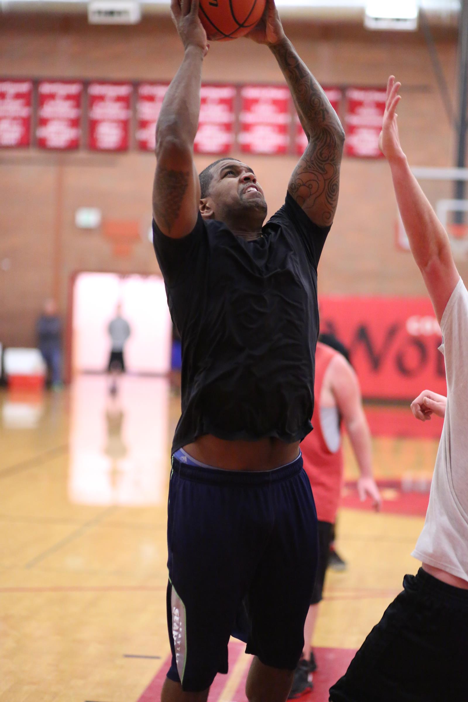 “Don’t mind me, nothing to see … just gonna stroll on by you for a quick layup.” (John Fisken photos)