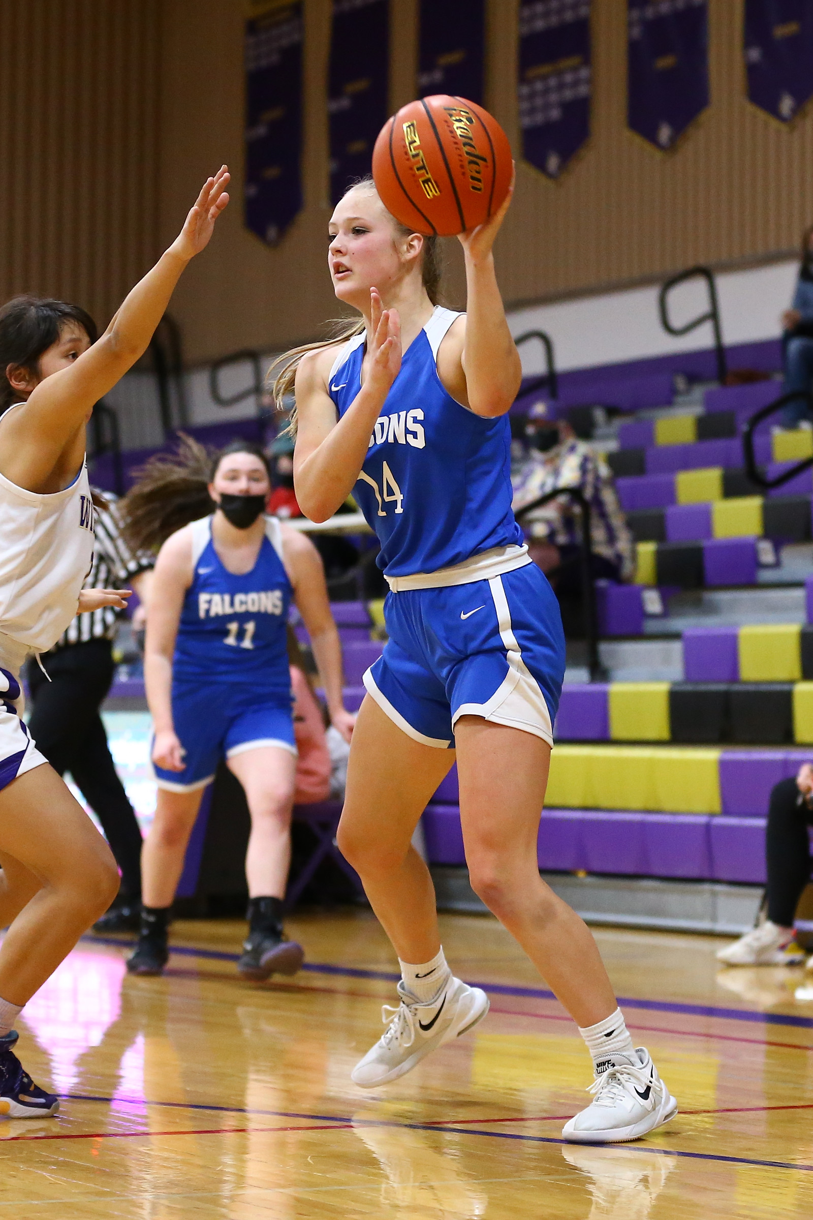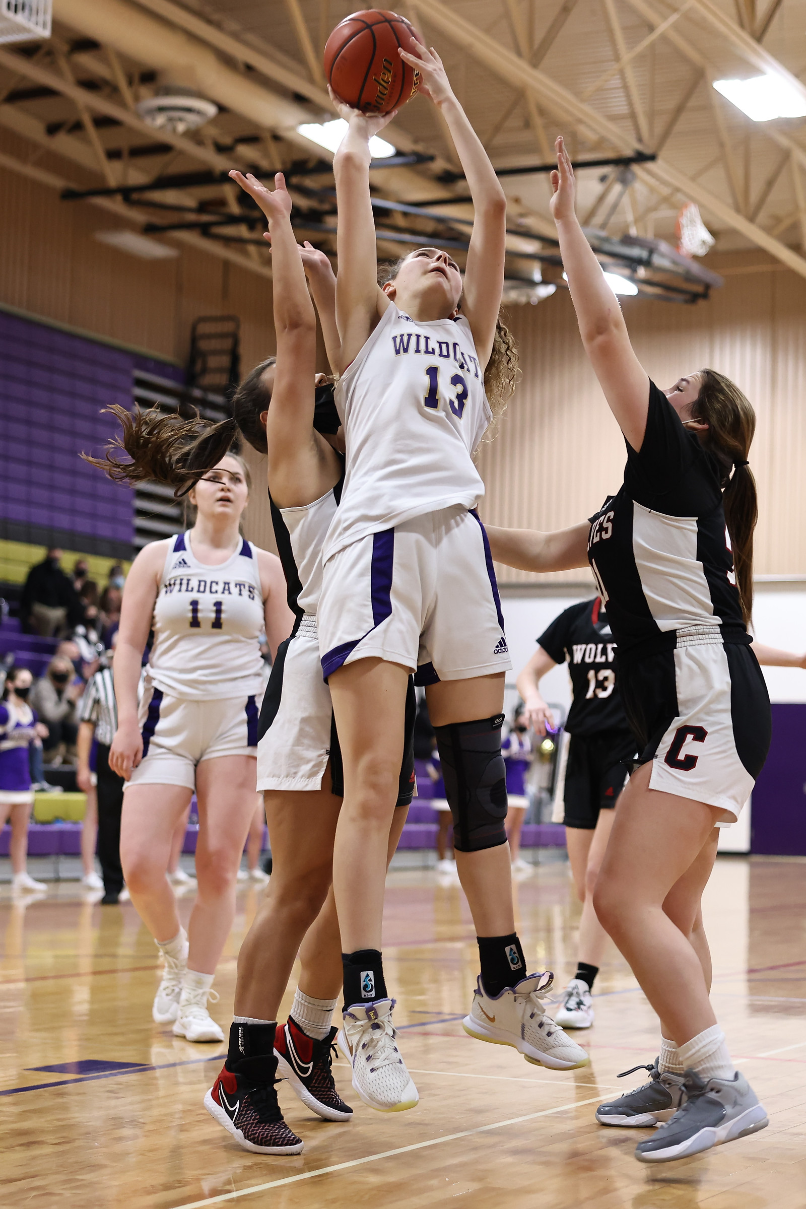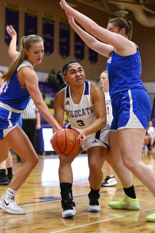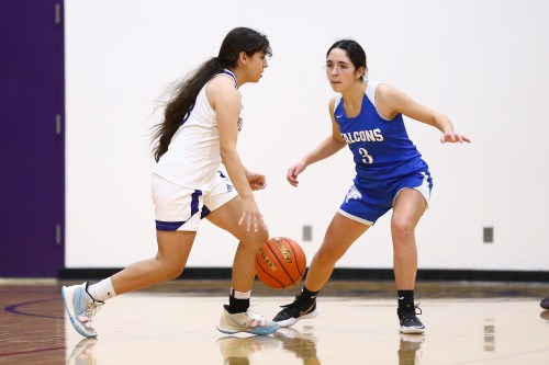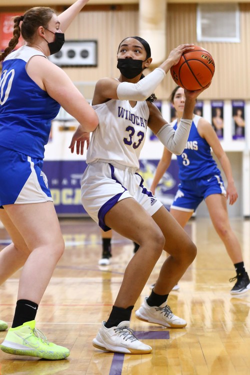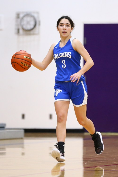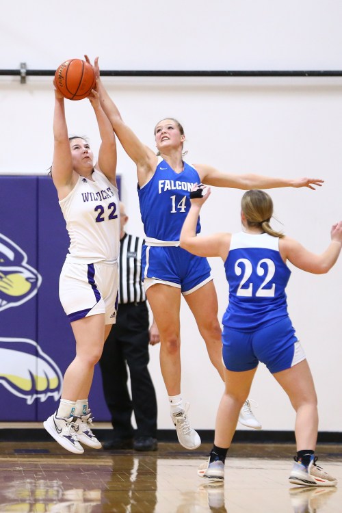 The pics, shot by John Fisken, come from Thursday’s varsity non-conference tilt between the Wildcat and Falcon girls basketball teams, a game won 46-35 by Oak Harbor.