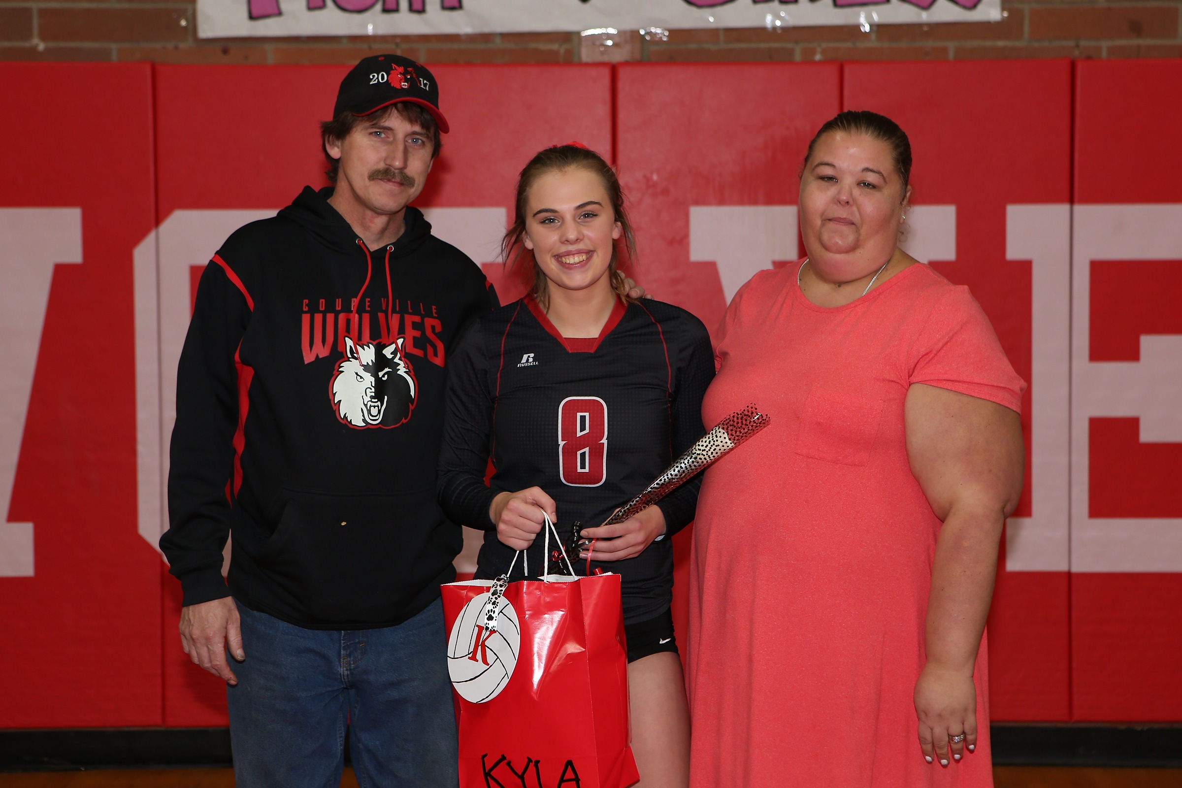 Former Coupeville JV volleyball coach Kristin Bridges (and son) popped in Thursday to watch the Wolves romp to a win. (Photos by JohnsPhotos.net)