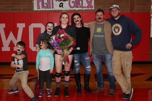 And, while Briscoe’s serves were crackin’ off elbows and fingers and slammin’ into the hardwood, she got plenty of aid from her hyped-up teammates.