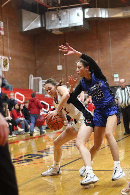 Chase Anderson is so shocked by District 2’s possibly un-American policy on cash money, he momentarily loses control of the basketball. (Jackie Saia photo)