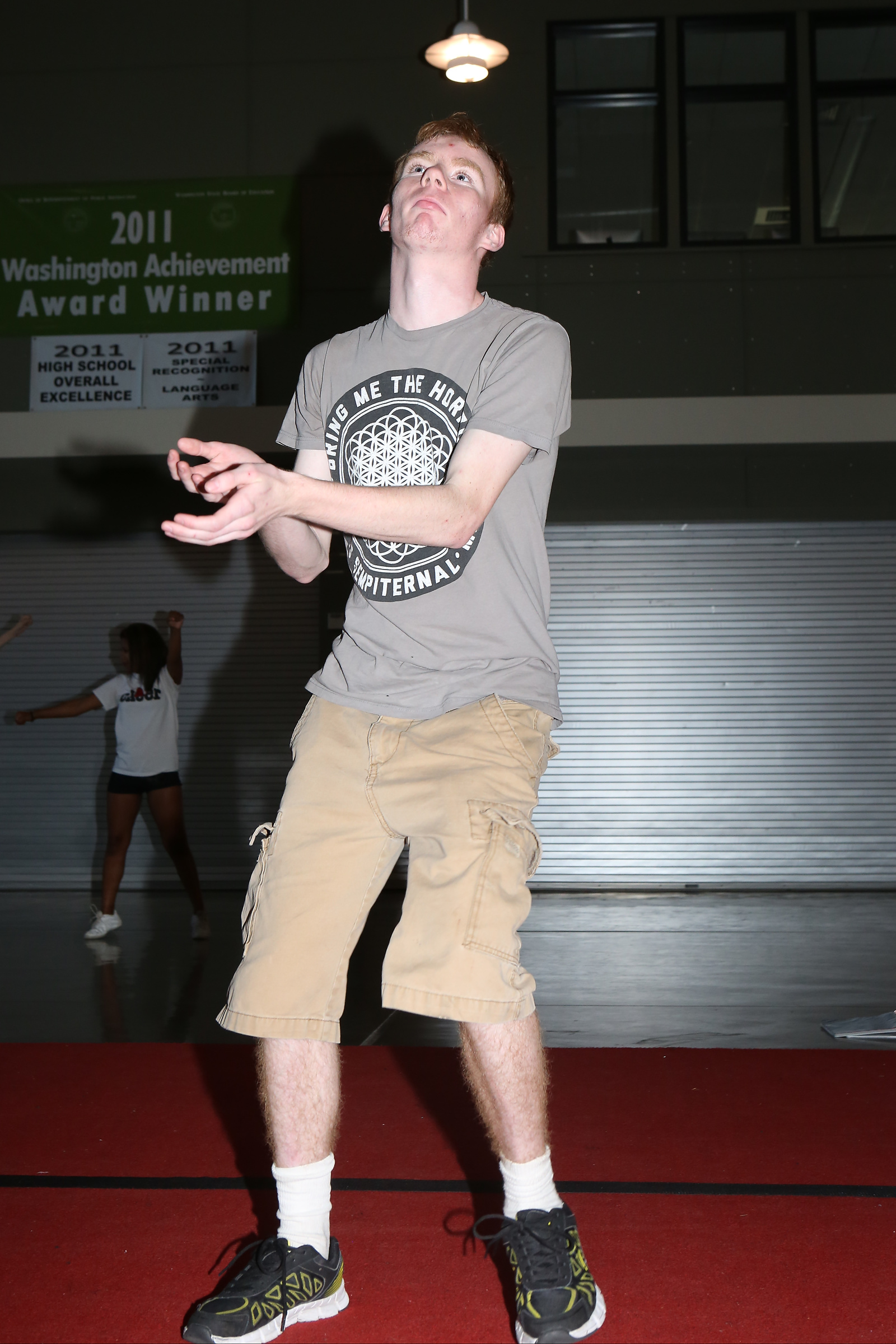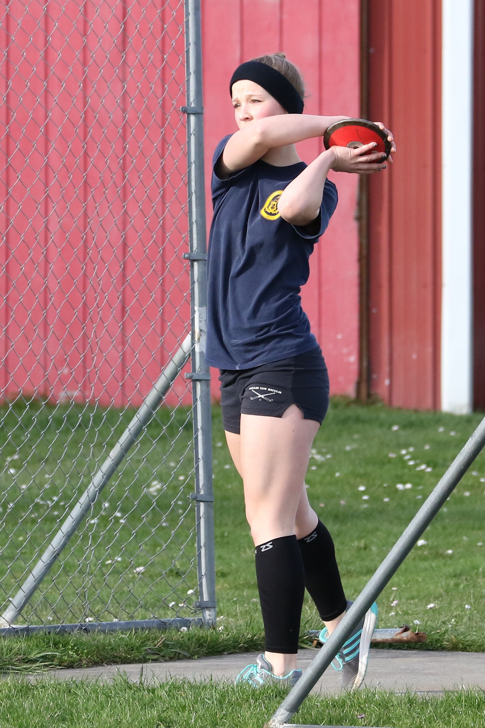 Just days after she and the Wolf girls’ basketball team went to state, sophomore Allison Wenzel gets limbered up for the discus.