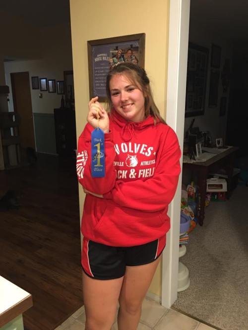 CMS 8th grader Kylie Chernikoff won a league title in the discus Wednesday, smashing her PR by 13 feet. (Joanne Chernikoff photo)