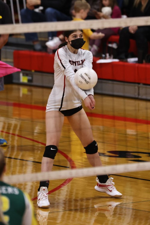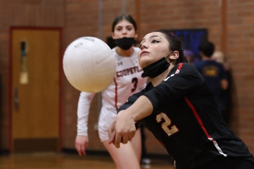 Ryanne Knoblich had four digs Thursday as Coupeville thrashed visiting Friday Harbor. (Photos by JohnsPhotos.net)