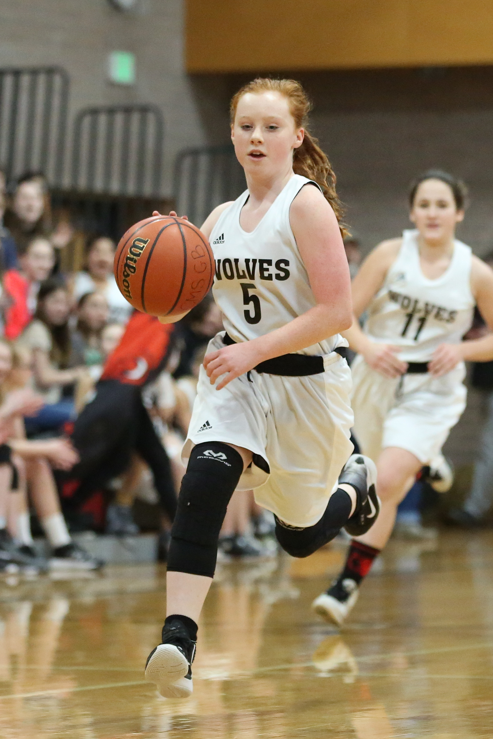 Maddie Georges, seen here during basketball season last year, had an impressive volleyball debut Tuesday afternoon. (Photo by JohnsPhotos.net)